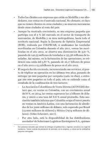 Capítulo seis. Soluciones Logísticas Enviexpress S.A.... 103