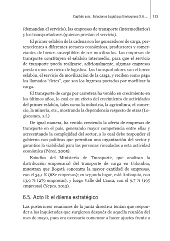 Capítulo seis. Soluciones Logísticas Enviexpress S.A.... 113